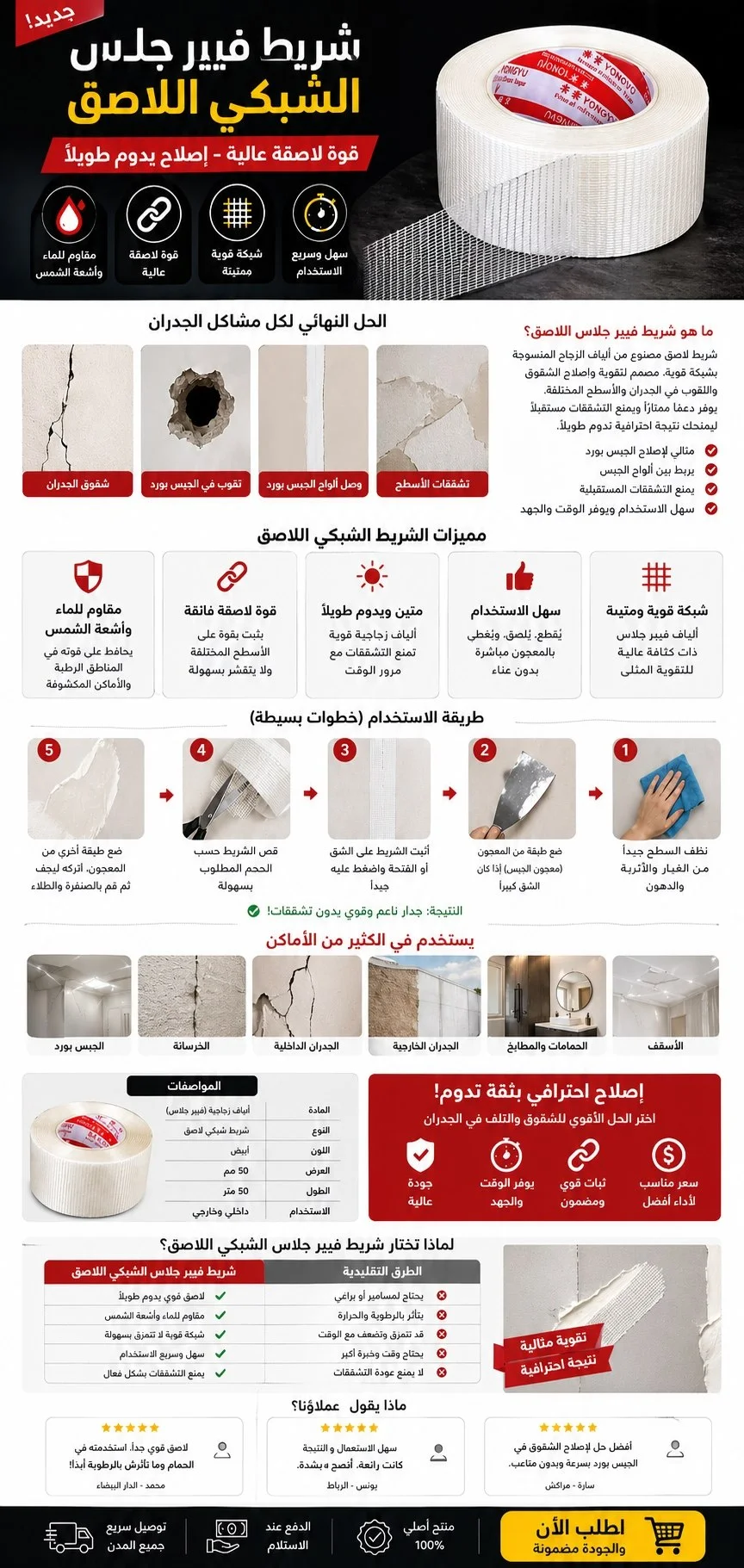 شريط عازل للصوت ، لاصق ذاتي ، صامد للريح ،للمياه ، ضد الحشرات ، حاجب الريح.